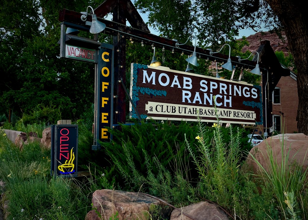 For the best coffee in my opinion, check out Moab Spring Ranch which has a small coffee house called “Horsethief Coffee” in the original building dating from 1896. This is a place to vacation at but the coffee house is open to everybody. Great coffee and great art for sale if you want a unique memory and support a local artist.
