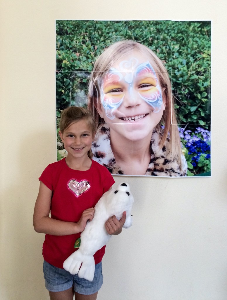 These two images show the final product and a close up of one of the 8×10 panels so you can see the print quality. Since my print would only print up to a 13 inch page, I went with 8×10 panels and taped them together on the back side. This was done online where you feed the image into an online tool and the tool spits out a dozen PDF files that you print out and tape together. There are several ways to do this now ranging from Adobe Acrobat to online tools.