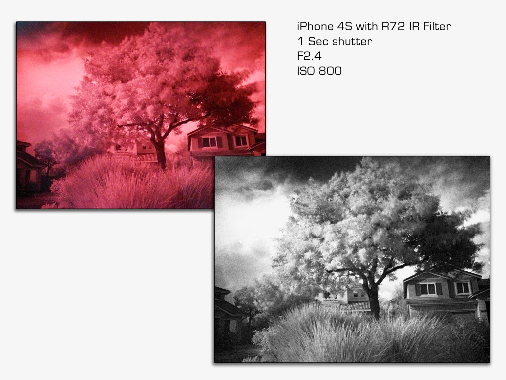 Did you know that you can actually get a real infrared ( IR) look on a smartphone without having to use IR film. There is a special filter one can buy called an R72 that filters out all light except the IR. Now, the camera sensor has a filter to filter out IR light over the sensor so you have competing interests at play here. The good news is the IR filter over the sensor is not 100%. So use the R72 and a lonnnnng exposure and you will end up with an “IR” image. It will look red and ugly until you post process it.