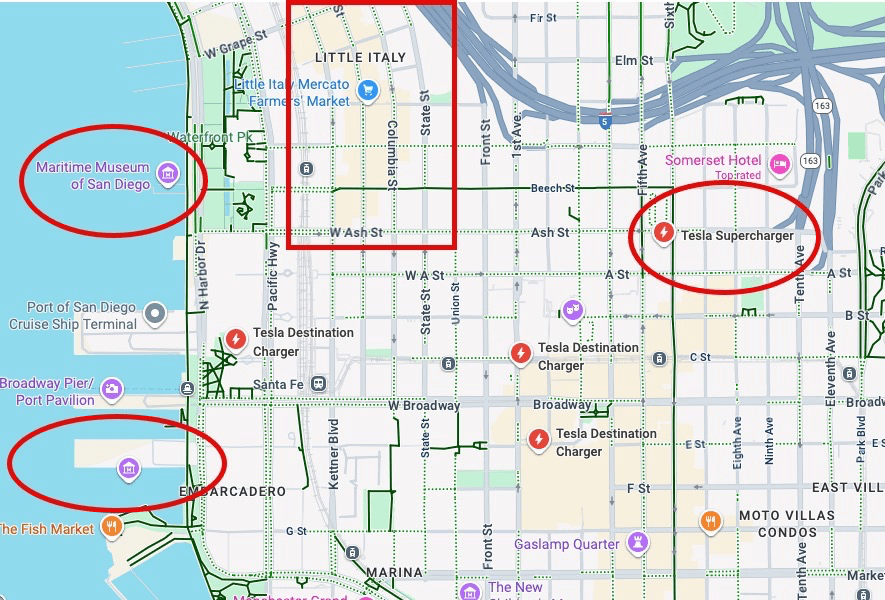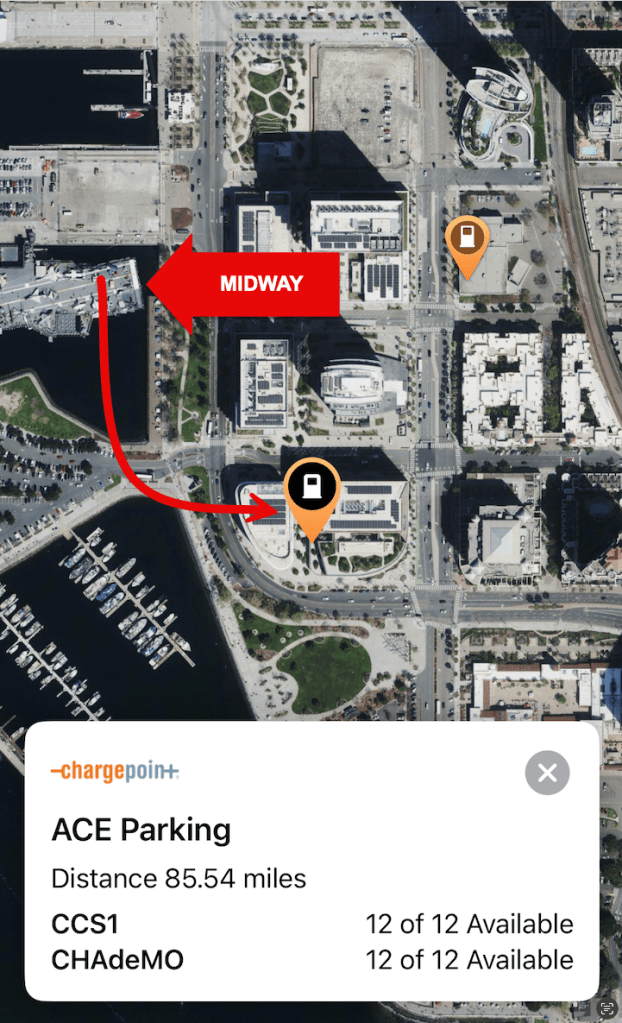For those like myself who drive an EV, charging is always a question. For Tesla owners, you can find a Supercharger just a few blocks away. This is not a state of the at supercharger. These are older 72Kw charger which are not CCS or adapter compatible. However, there are several destination Tesla chargers nearby such as the Lane Field North Garage at 900 Bayfront Ct. These chargers can be used with CCS EVs with the correct adapter.. The brand “name” for these adapters are called “Tesla Tap” but there are cheaper versions. This link is the unit I bought for my GM Bolt and Hybrid Pacifica.
