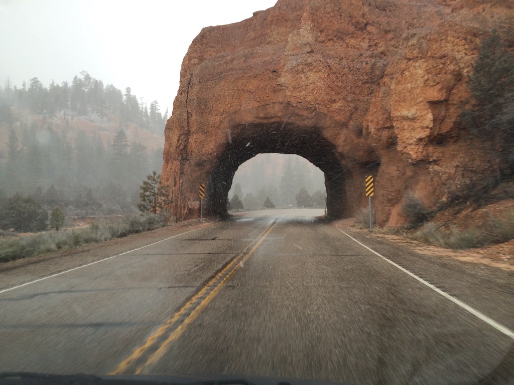The image below was taken during a day trip on the Zion Scenic Drive. The trip started with sunshine and ended with snow and sleet.